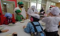 餃子の皮を使って、せんべいを作り、しおとソースで味をつけみんなで仲良く食べました!